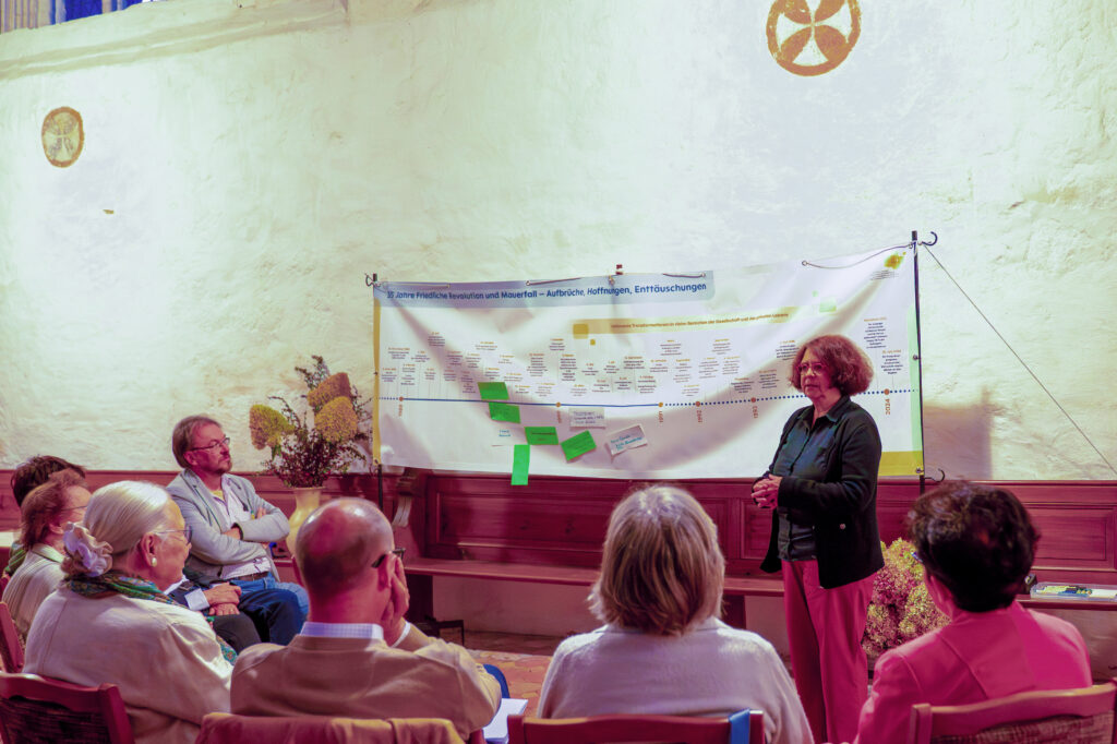 Bei den Veranstaltungen wurde gemeinsam zurückgeschaut, welche Ereignisse damals prägend waren, welche Aufbrüche und Hoffnungen es gab, welche Ideen umgesetzt werden konnten, aber auch welche Enttäuschungen erlebt wurden und wie sich dies alles in den Lebenslinien der Einzelnen und der Familien widerspiegelt. Auch die vielfältigen Umbrüche, die Arbeitslosigkeit und Neuorientierungen in der Transformationszeit kamen zur Sprache. Im Rückblick erzählten viele auch mit Stolz darüber, was sie alles bewältigt haben. Für manche taten sich ganz ungeahnte neue Lebenswege auf.
